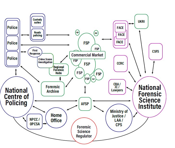 The report on forensic science is well worth a read. As I have documented relentlessly on this substack, England and Wales, for many reasons, is a global outlier when it comes to the provision of forensic science. Whether we are the pioneers of a new way of doing forensic science efficiently and effectively or have completely lost the plot and ended up turning the clock backwards is a matter of opinion, this report seeks to clarify precisely where we are and suggest a means to move forward. This post is all about looking at some of what their recommendations are and what the implications of accepting them could mean.